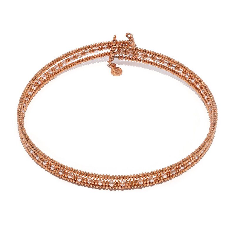Collana choker a molla a 3 fili di perline, di cui quello centrale impreziosito da cristalli rosa, nickel tested.