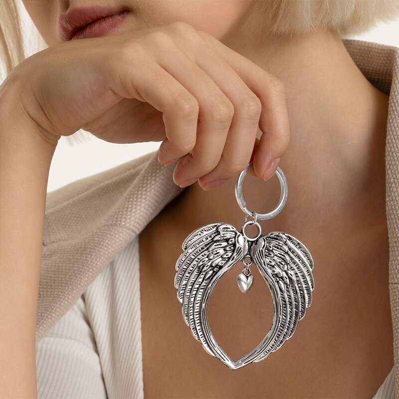 Portachiavi con ad ali con pendente cuore centrale, nickel tested.